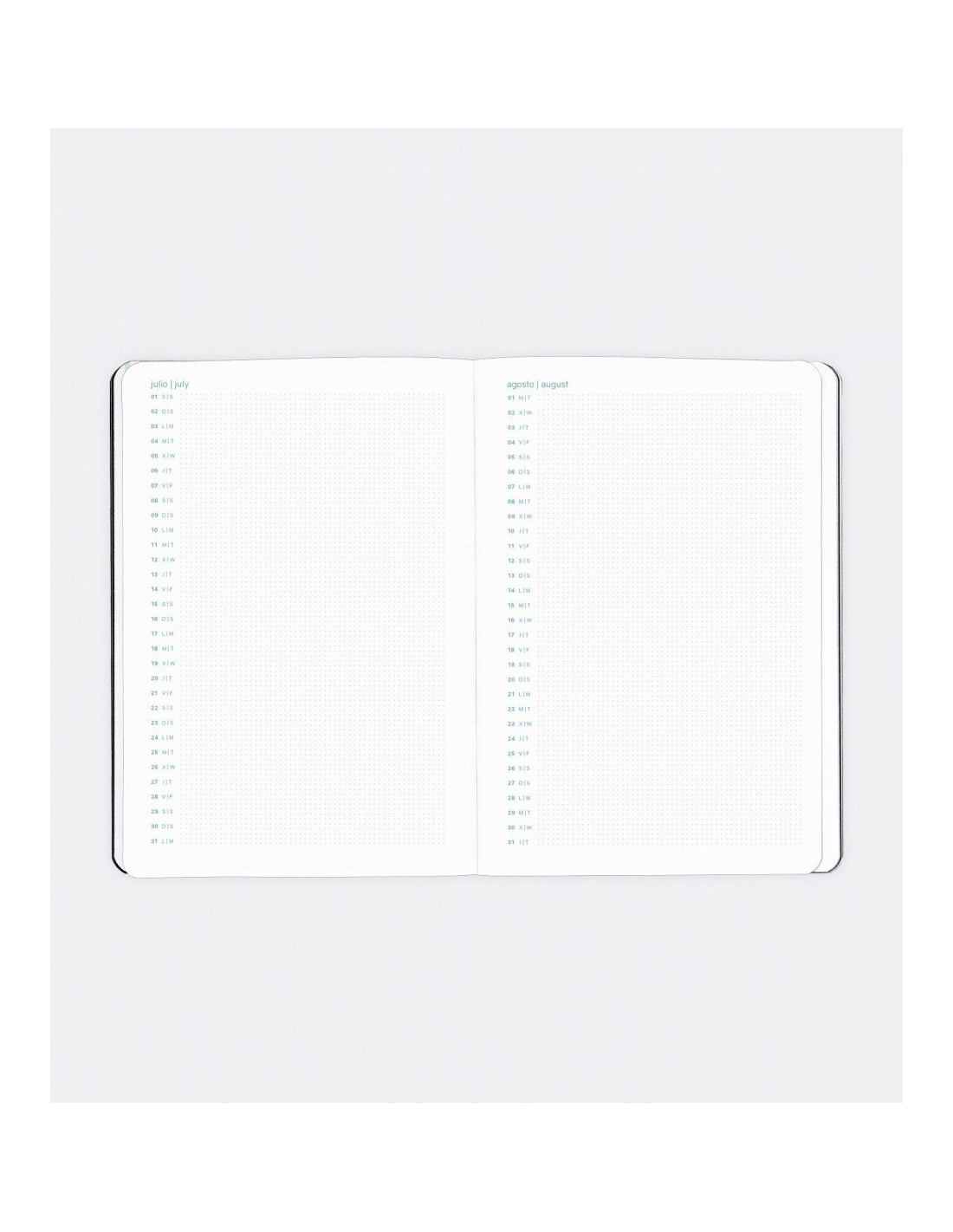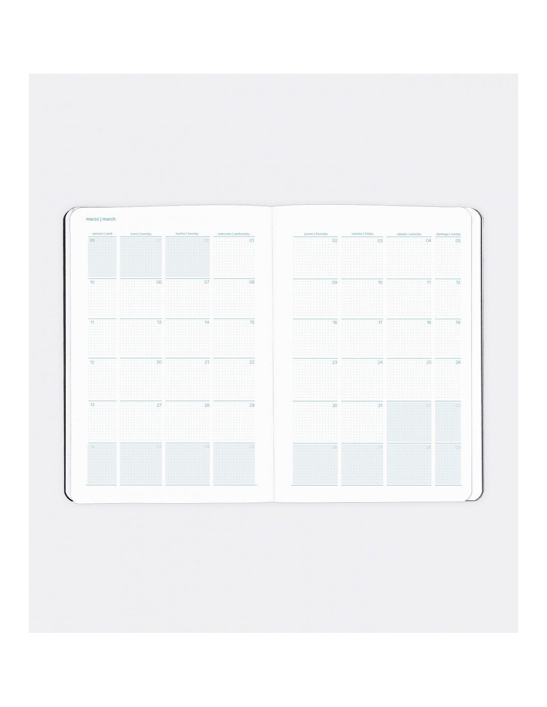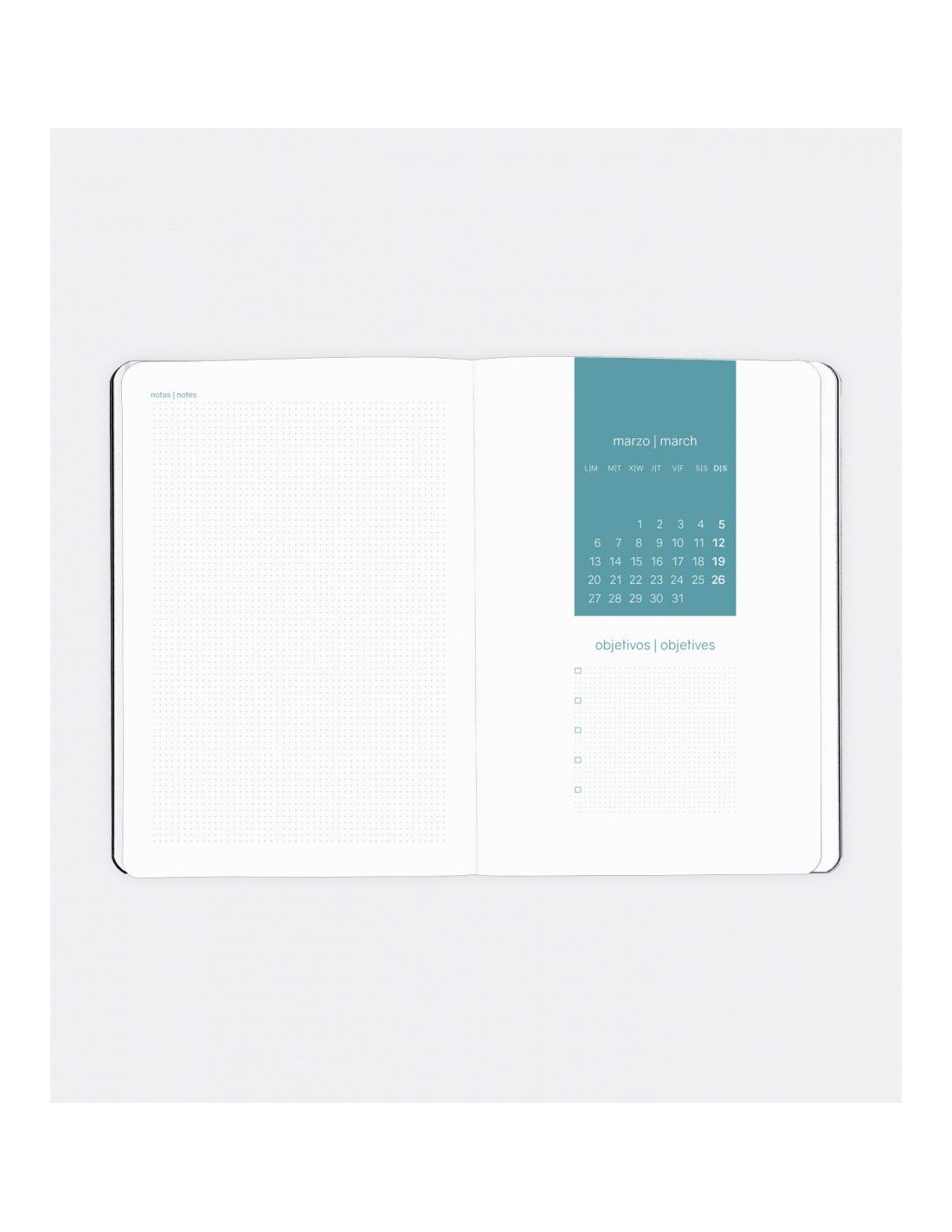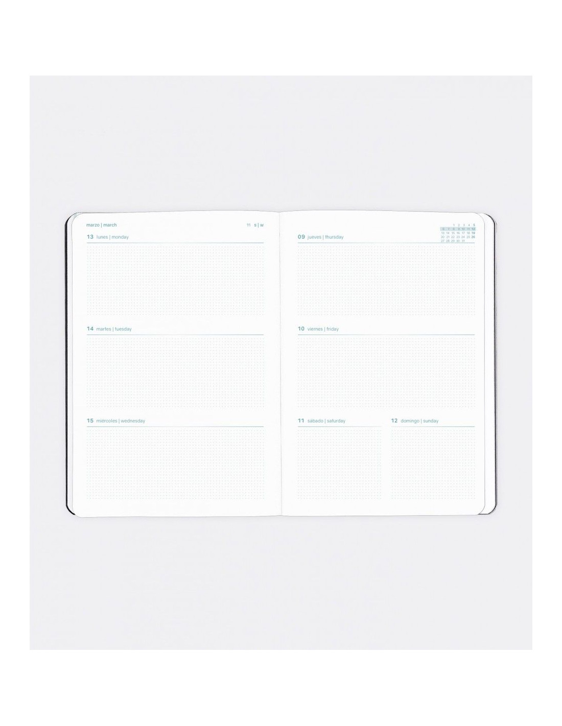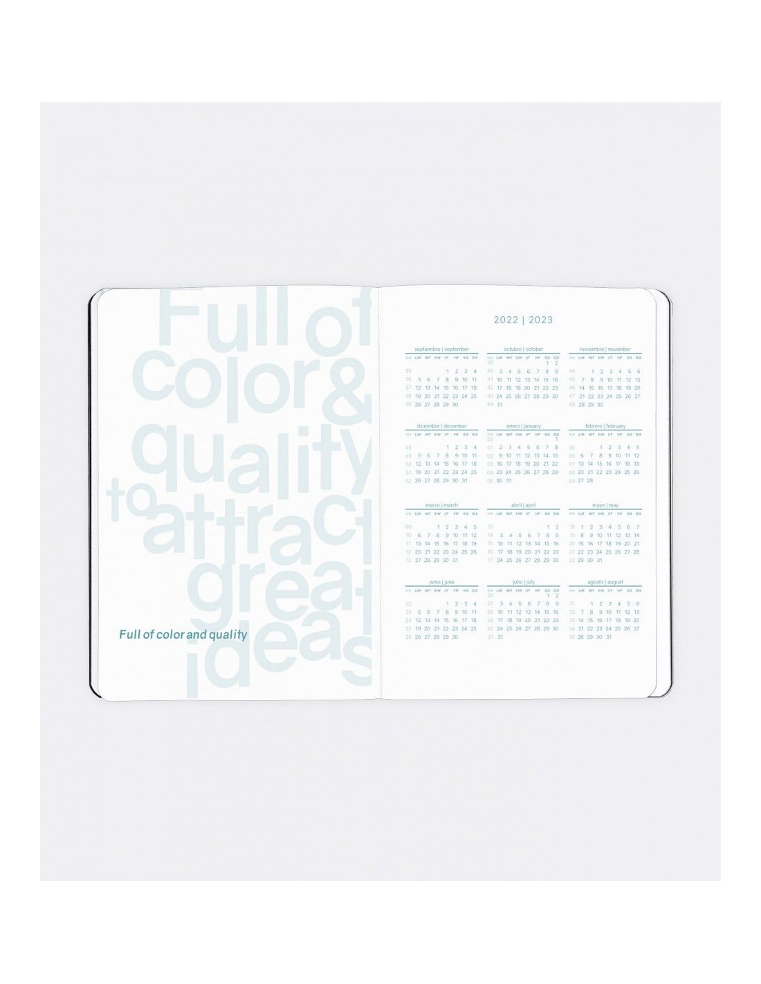 Anualidad: Semana Vista (S/V) 12 meses: Septiembre 2022 a Agosto 2023Idiomas: Inglés, Castellano, Portugués, Italiano, Francés y Alemán.Tamaños: PLUS (4º): 15,5 x 21,3 cm