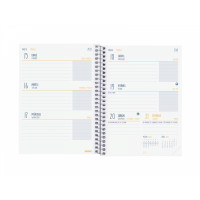 Anualidad: Día Página (D/P) 12 meses: Septiembre 2022 a Agosto 2023Idiomas: Inglés, Castellano, Portugués, Italiano, Francés y Alemán.Tamaños: PLUS (4º): 15,5 x 21,3 cm