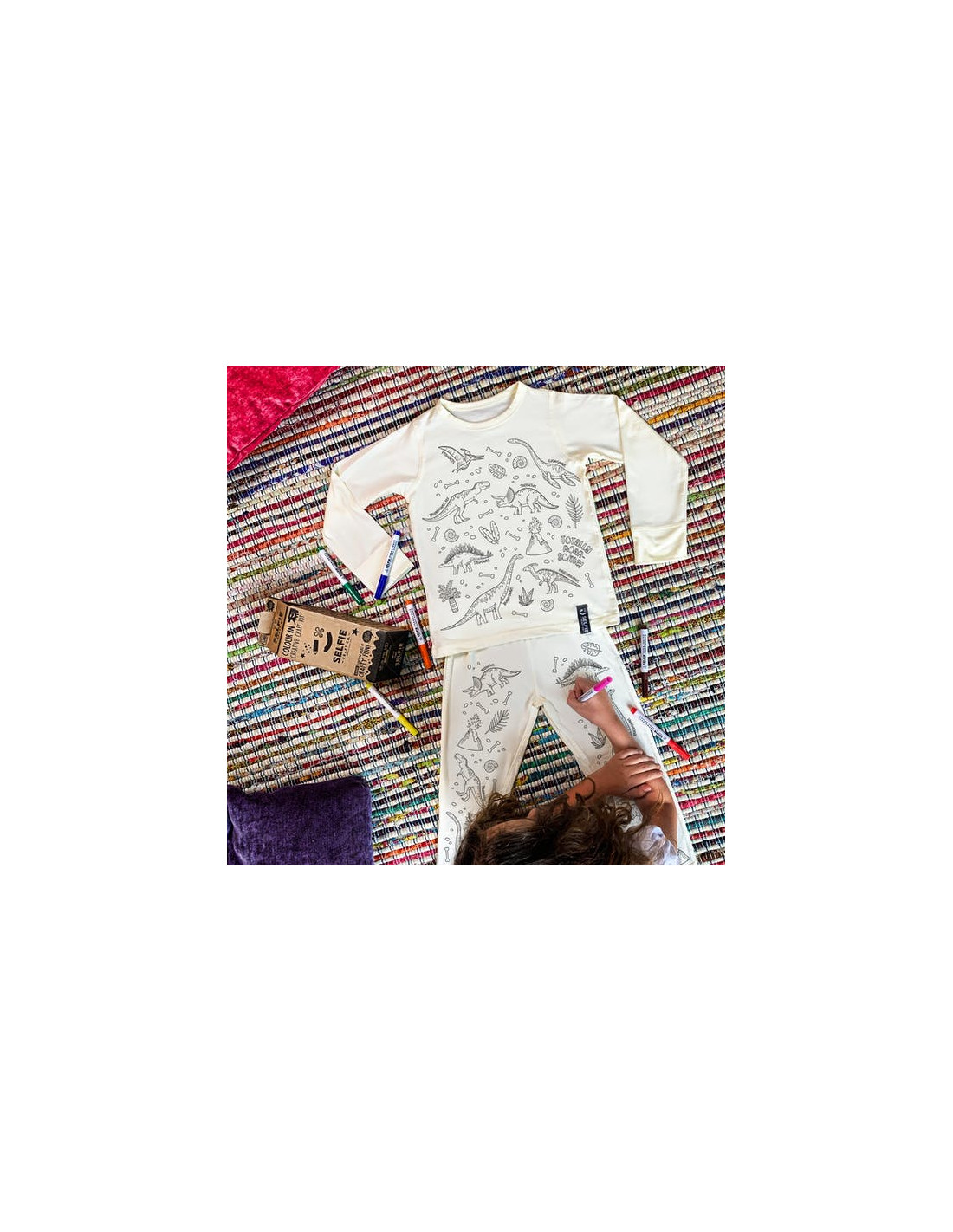 ¡Transforma tu mundo en un color en una aventura rugiente! Este kit creativo de colores para niños bellamente empaquetado incluye; una blusa y pantalones de pijama de manga larga y siete colores de tela en bolígrafos disponibles para niños de 3 a 12 años. El conjunto de pijama de mezcla de jersey liviano presenta un color único en el diseño, listo para que sus pequeños se vuelvan creativos. Los bolígrafos de tela utilizan tinta UV de alta calidad que puede curarse al aire durante 24 horas o ser planchada por uno de los padres. Los colores no se desvanecen y se pueden usar una y otra vez. Los productos están diseñados, impresos a mano en el Reino Unido exclusivamente para Selfie Craft Co.