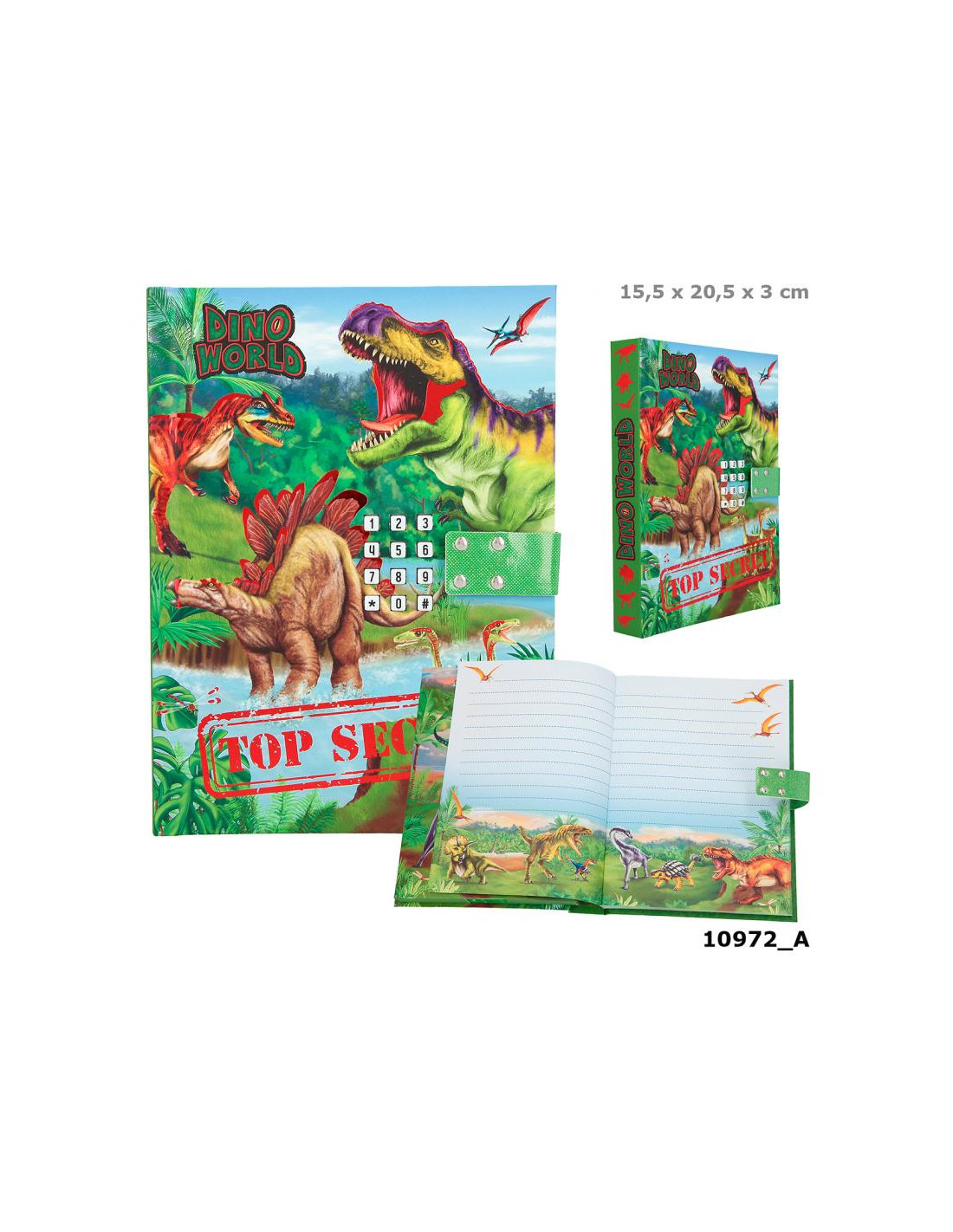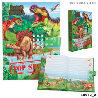 ¡Cuidado no te muerda el dinosaurio! Este diario está hecho para guardar tus mayores secretos porque el dinosaurio se encarga de vigilar que nadie se acerque. Solo se abre introduciendo un código secreto de cuatro cifras, ¡naturalmente acompañado por un rugido de dinosaurio! 80 páginas ilustradas a todo color ofrecen mucho espacio para las cosas más personales. ¡GRRR!