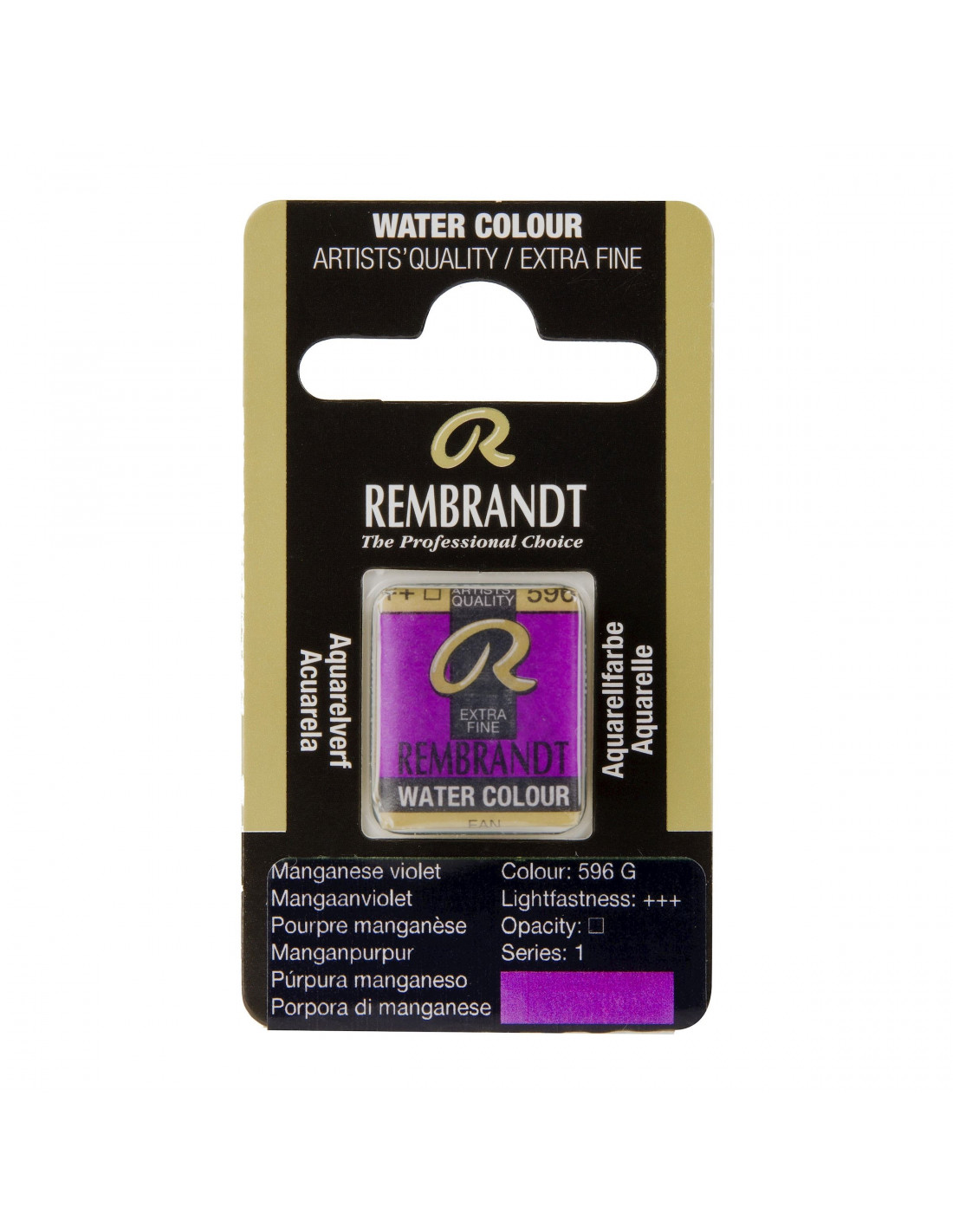 Las acuarelas Rembrandt se elaboran en los Países Bajos solo con los mejores materiales. Esta gama de color de calidad profesional está hecha con los pigmentos más puros y goma arábiga de la más pura calidad para obtener unos colores brillantes y constantes. Esta media pastilla de púrpura manganeso está formulada con pigmento PV16 y tiene un grado de resistencia a la luz de +++ (más de 100 años en iluminación de museo). Estas acuarelas de la Serie 1 tienen la calificación de transparentes en cuanto a opacidad/transparencia.