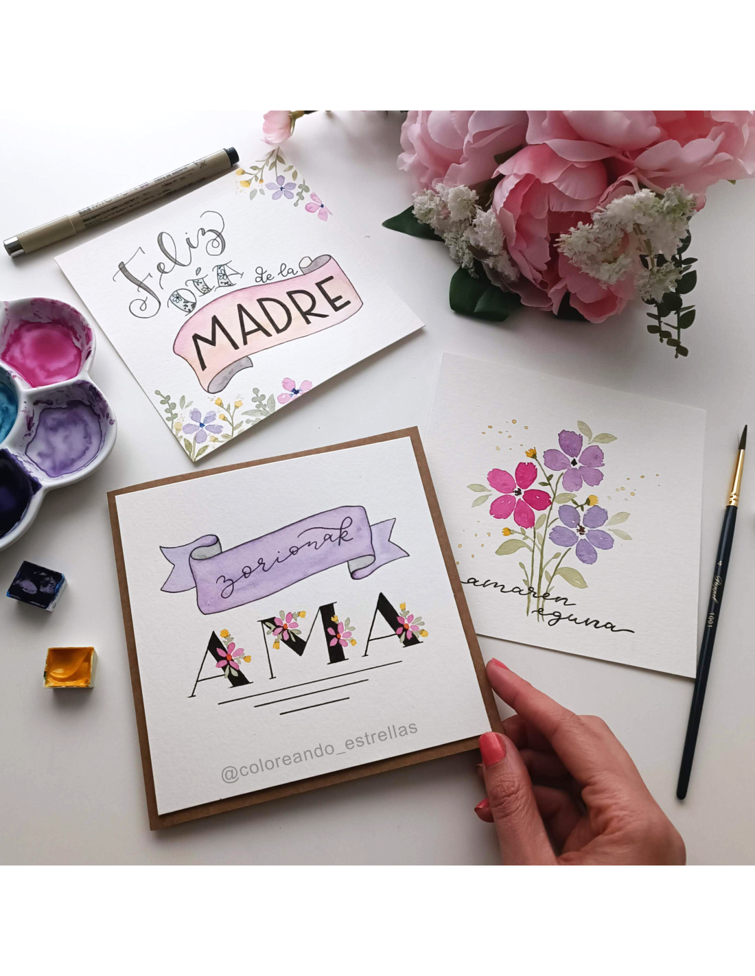 El día de la madre se acerca y no hay mejor regalo que un detalle hecho por nosotros mism@s. Por ello os animamos a que vengáis a este taller tan bonito, donde realizaremos una tarjeta con acuarela y lettering.